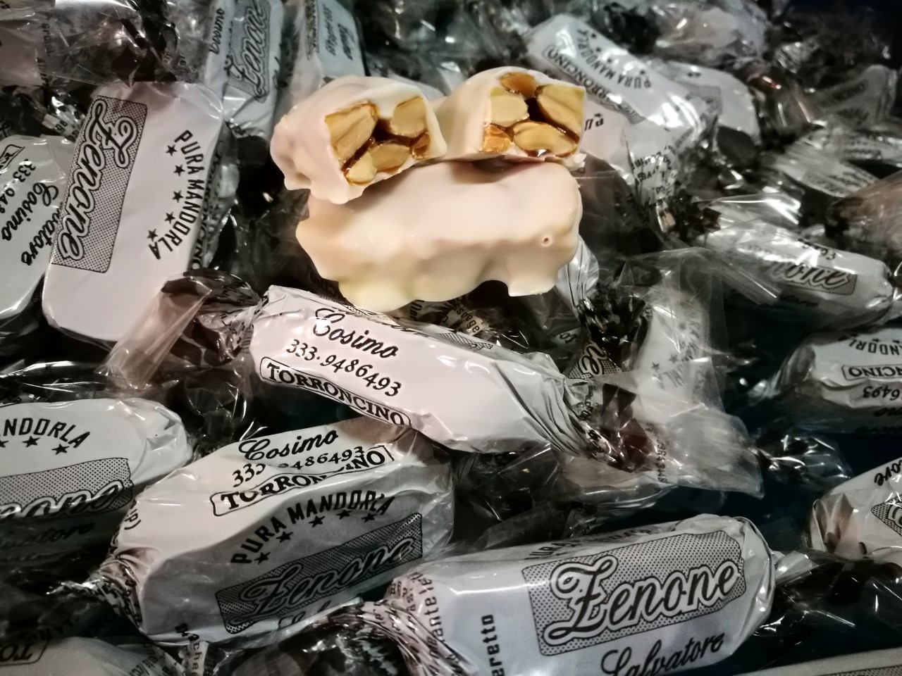 Torrone di pura mandorla ricoperto di finissimo cioccolato bianco.